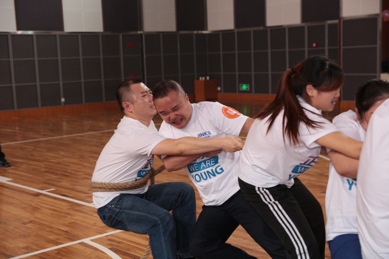 與傳統(tǒng)運動會不同,趣味運動會將競技與娛樂相結(jié)合,著重突出參與和合作。兔子跳,10人11足賽跑,拔河,接力賽,等比賽項目不僅是團隊合作精神的良好體現(xiàn),而且兼顧了趣味性和互動性,因此受到了同事們的歡迎。比賽現(xiàn)場掌聲、笑聲、觀眾們的“加油”聲、獲勝者的歡呼聲此起彼伏,場上場下互動交流、相互調(diào)侃,整個比賽過程始終充滿了歡樂祥和的氣氛。